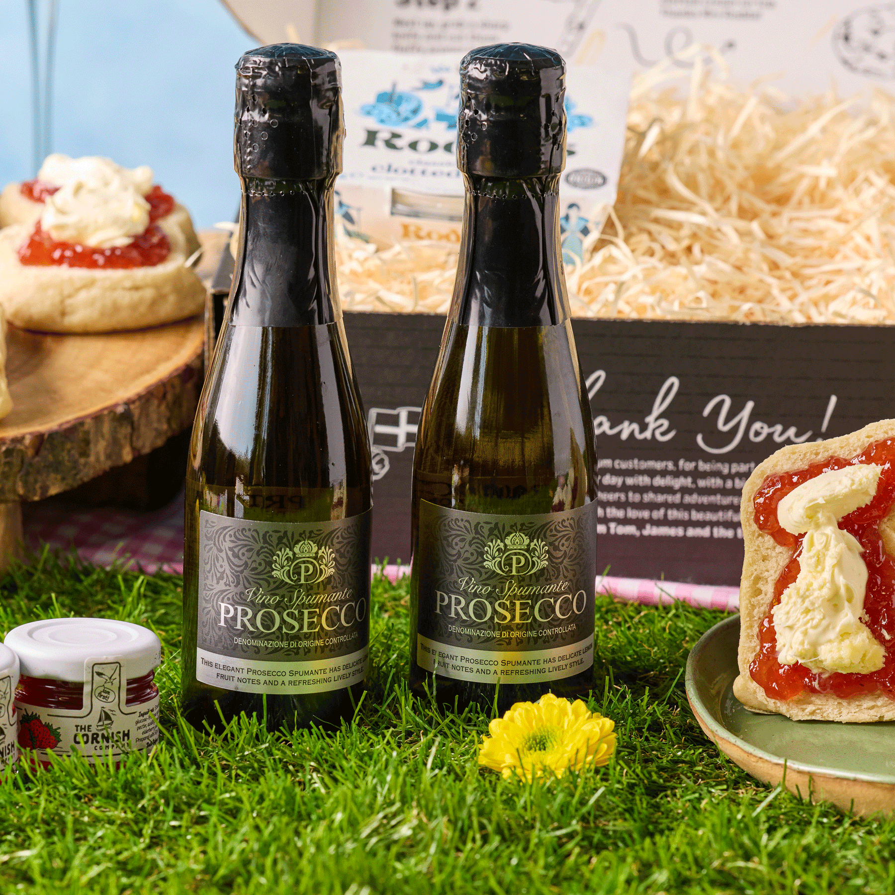 2 x Prosecco Spumante Extra Dry 20cl: Celebrate the moment with a bubbly, crisp glass of Prosecco Spumante Extra Dry, the perfect sparkling accompaniment to your hamper.