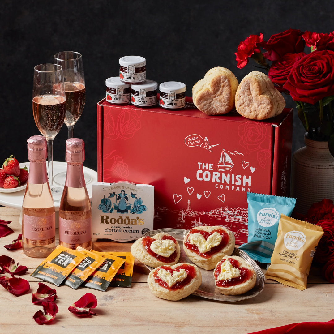 Celebrate love with our range of Valentine’s Day hampers, filled with irresistible Cornish treats. Whether you’re searching for the perfect Valentine’s Day hamper for him or for her, we’ve got you covered. Indulge in heart-shaped scones topped with jam and clotted cream, savour our signature ‘I Love You’ pasty, or delight in creamy fudge and chocolate. Our Valentine’s gift hampers are filled with a selection of the finest Cornish food and drink that your special someone is sure to love.